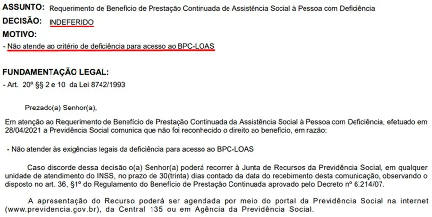 Em alguns casos, a deficiência ou condição de saúde do solicitante não foi devidamente comprovada ou reconhecida pelo perito.