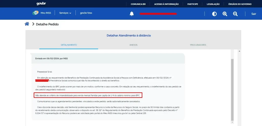A renda do grupo familiar pode ter ultrapassado o limite estabelecido pelo INSS para concessão do benefício.